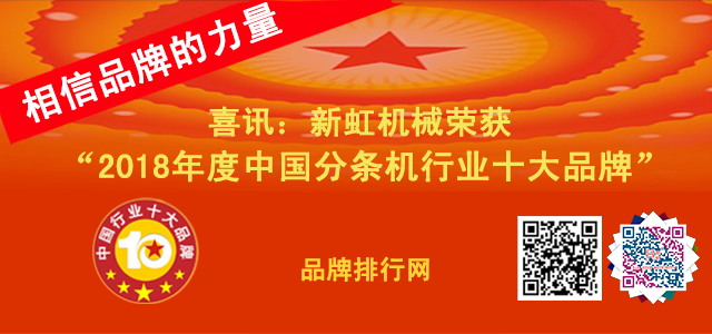 喜訊:新虹機(jī)械榮獲2018年度中國(guó)分條機(jī)行業(yè)十大品牌